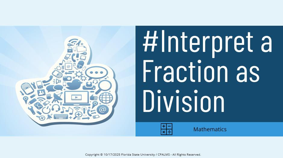 Learn to identify a fraction as division of the numerator by the denominator using fraction models in this interactive tutorial.