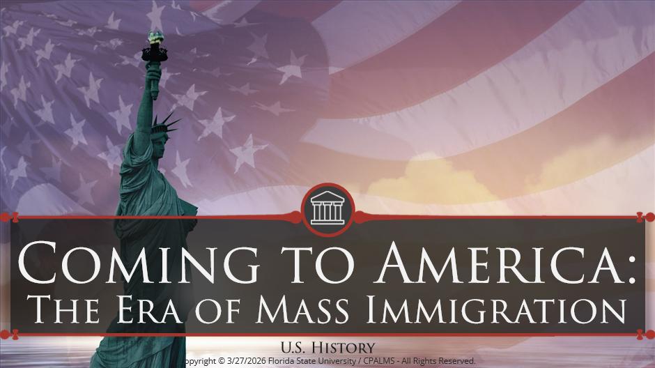 In this interactive tutorial, learn about the era of mass immigration from 1865 to 1914, when as many as 25 million immigrants entered the United States, many of them through Ellis Island. You'll learn where immigrants came from, why they emigrated, how they adjusted to life in the U.S., and you'll compare the experiences of European and Asian immigrants.