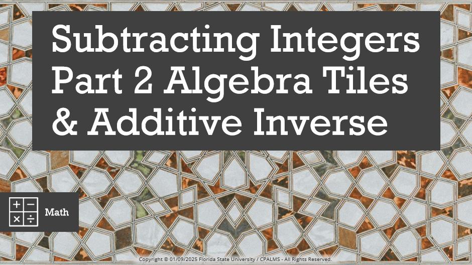 Learn how to subtract integers using algebra tiles and the additive inverse. This series will give you a few strategies to subtract integers and you can then choose the best for you!